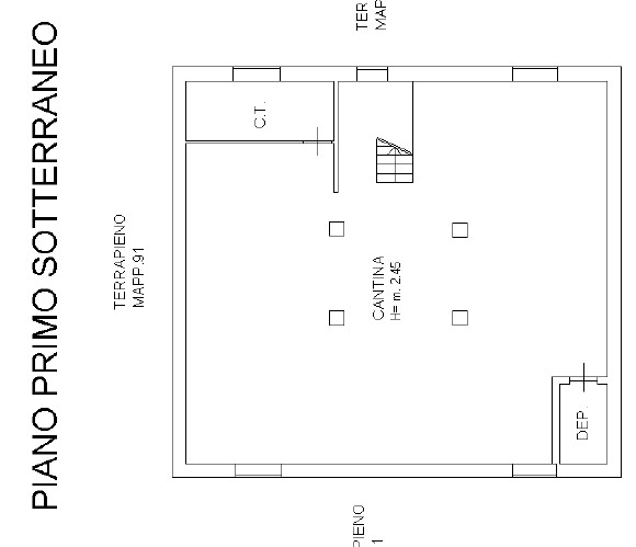 Al piano primo seminterrato si trovano un’ampia cantina, un locale deposito e il locale caldaia. Il piano terreno accoglie un ingresso con disimpegno, un bagno, un locale di sgombero, una lavanderia e due autorimesse di comode dimensioni.