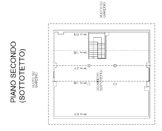 Il piano secondo ospita il sottotetto, ampio e versatile, ideale come deposito o per un futuro recupero.